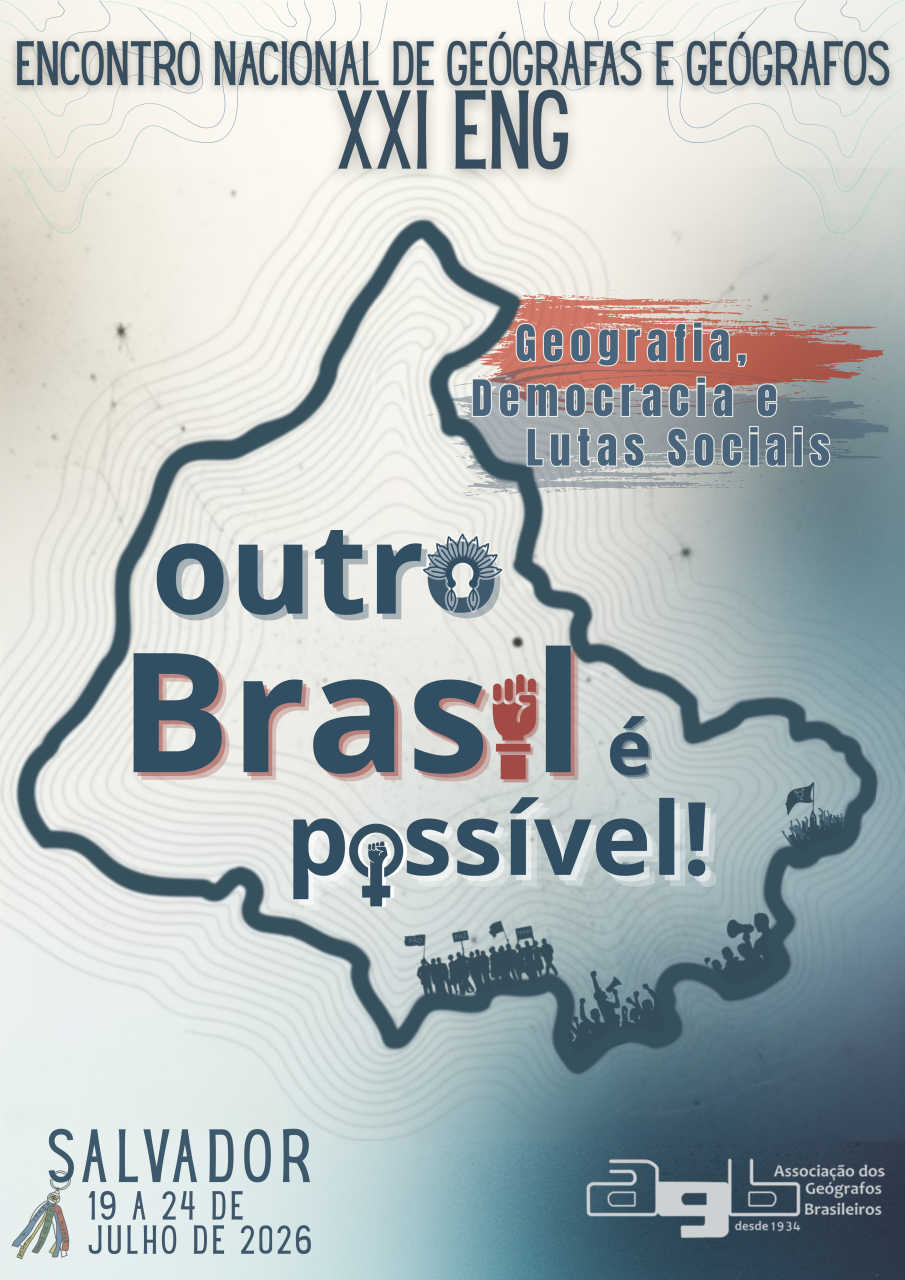 O XXI Encontro Nacional de Geógrafas e Geógrafos é um evento cujo objetivo é reunir estudantes da graduação e pós-graduação, professores da educação básica e do ensino superior, técnicos e pesquisadores em Geografia e do conjunto das ciências humanas, do Brasil e demais países da América Latina. Ou seja, a comunidade geográfica reunida, produzindo um espaço de discussão e reflexão sobre os rumos da Geografia. O XXI ENG é organizado pela Associação dos Geógrafos Brasileiros (AGB), sendo esta uma entidade civil, de caráter técnico-científico e cultural, sem fins lucrativos.